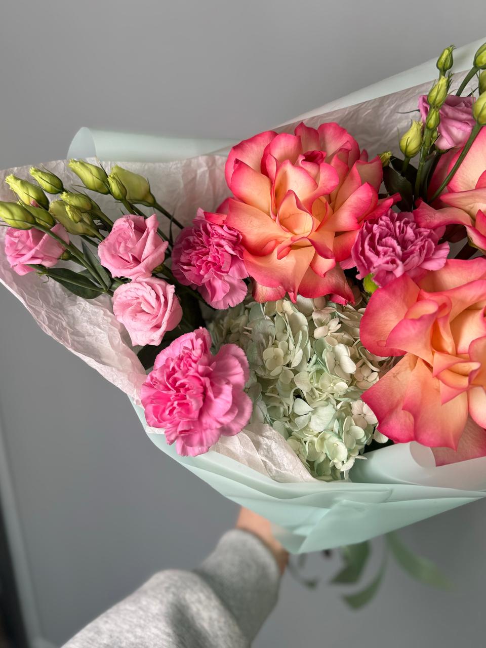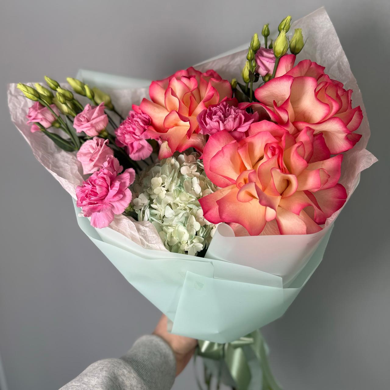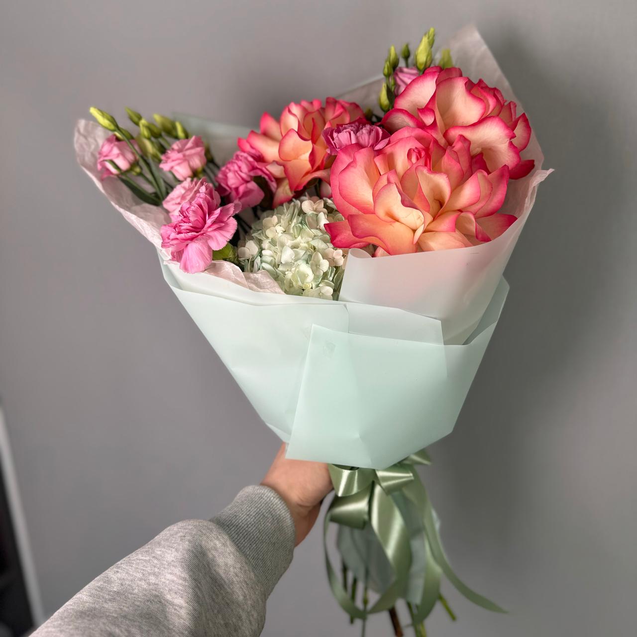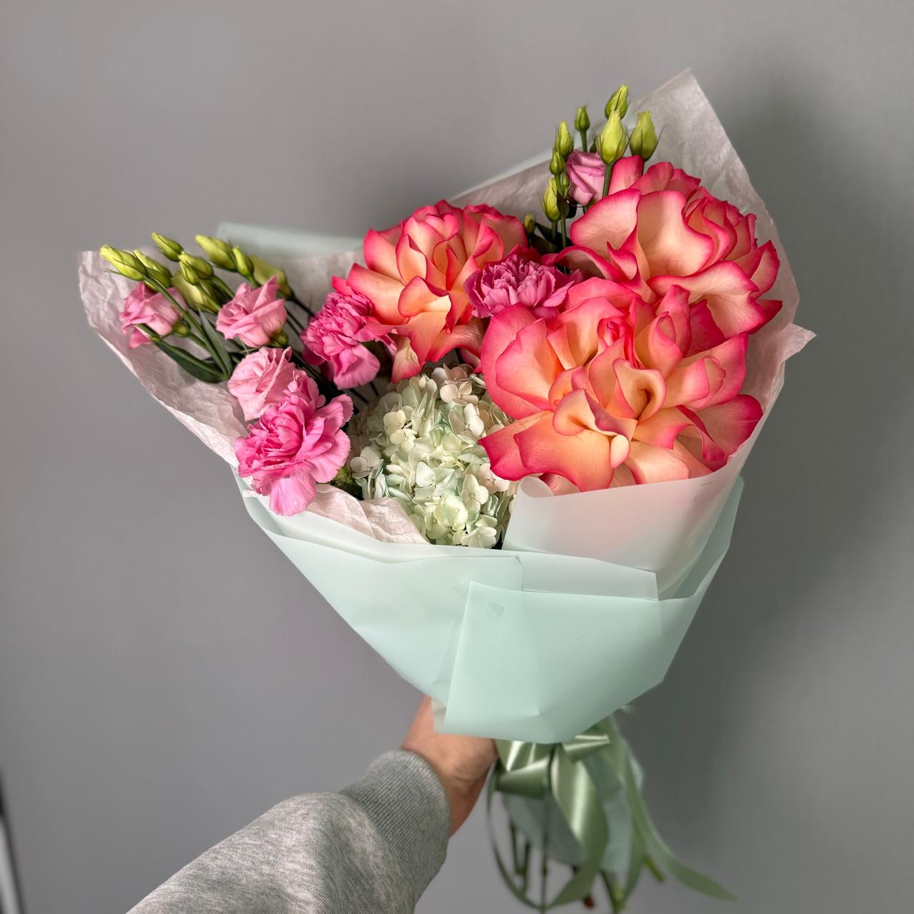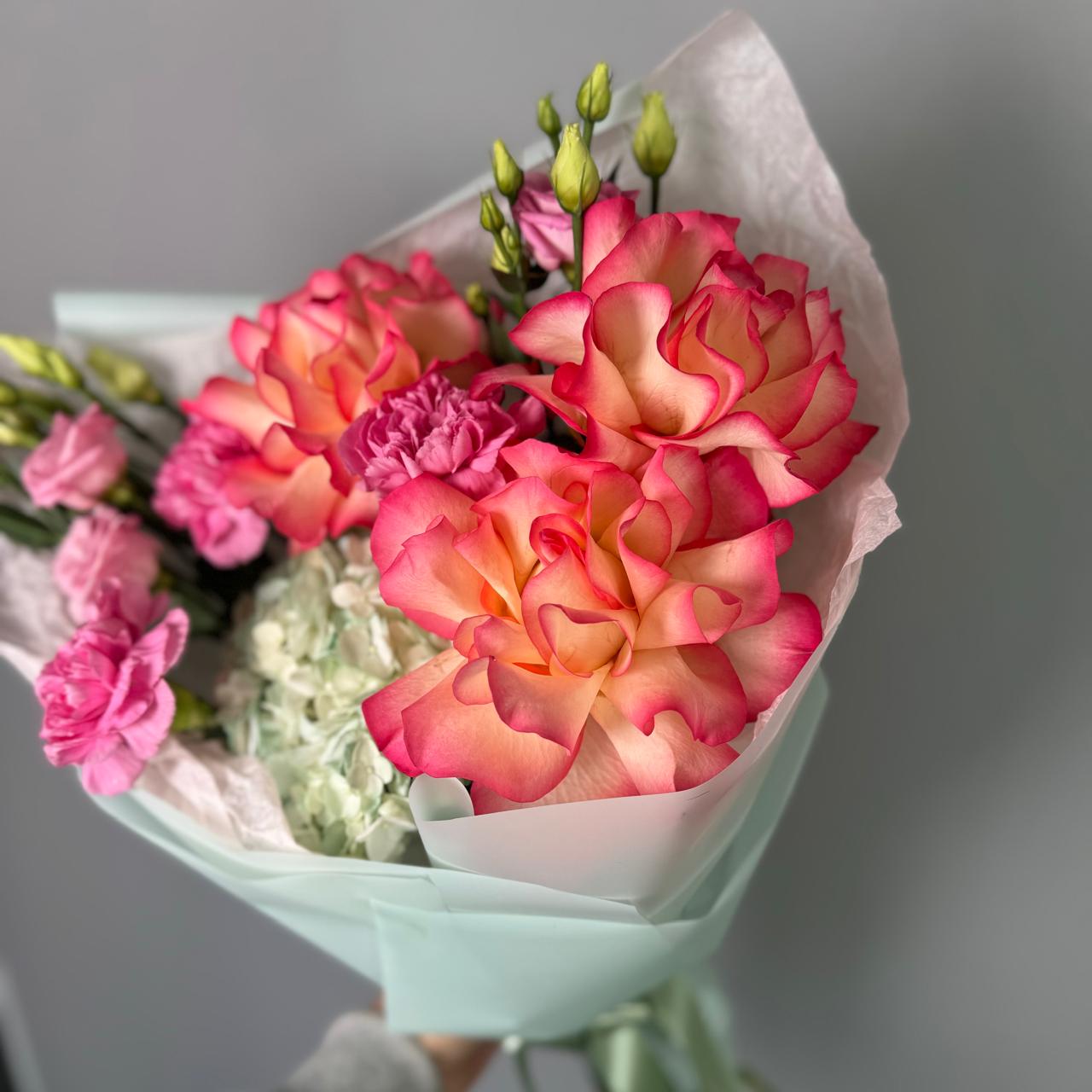 Букет с французскими розами и диантусами