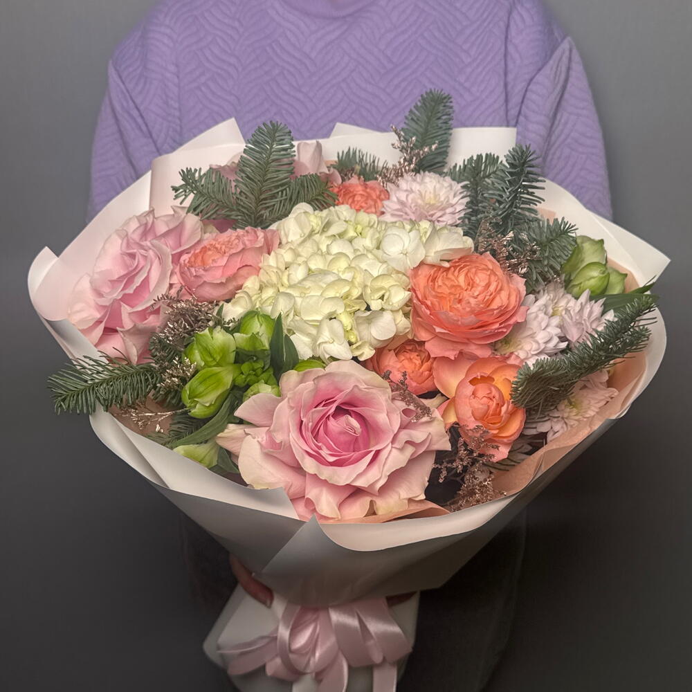 Сборный нежный букет с нобилисом и пионоводиными розами «Зимнее утро»
